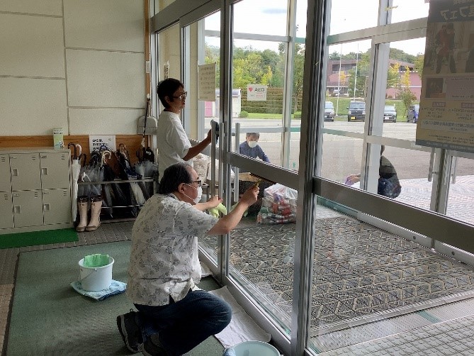 ゆり支援フェスティバルに向けて、PTA環境整備部員の皆さんが窓ふきや装飾などの環境整備活動を行いました。